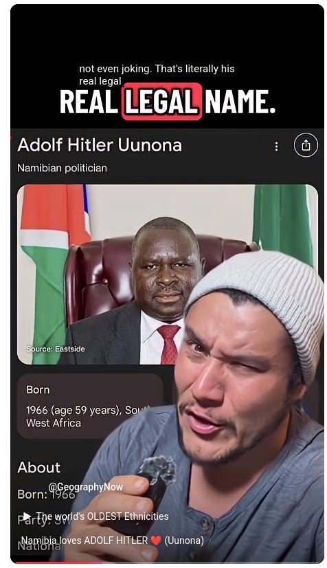 Yes, his real name is Adolf Hitler and he is a very popular politician in Namibia: