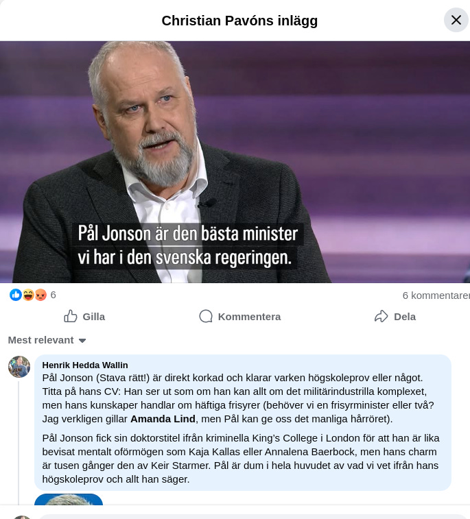 But you will get push-back if total fantasies about that Sweden’s retarded defense minister is smart - My friend has to correct that: