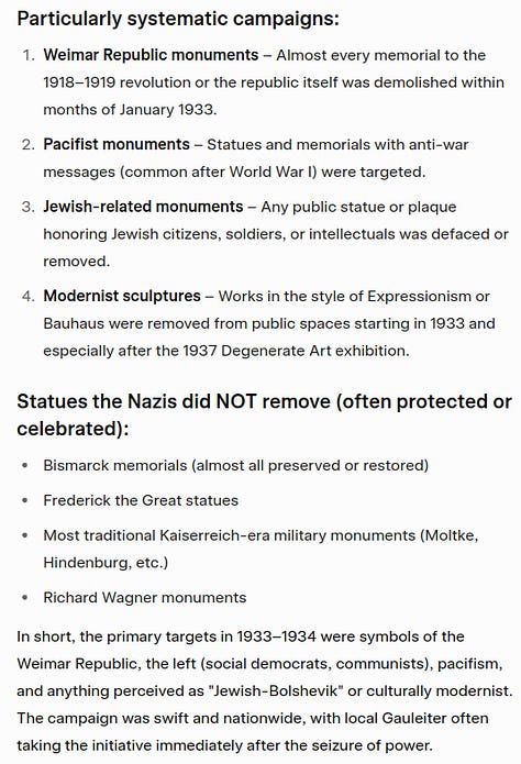 Exactly what statues did NSDAP remove in the 1930ths in Germany? You think this will make the national socialists look worse than Mark Levin and Ben Shapiro?