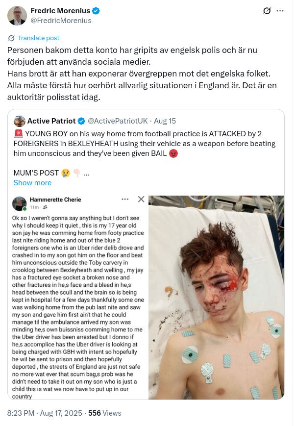 My 𝕏 account, My Bitchute and Old.Bitchute channel. My Odysee channel, My Brighteon English only Channel, My English only Minds, My Facebook, Nostr, please comment instead of sending me an email, but my email address is heddahenrik at gmail.com