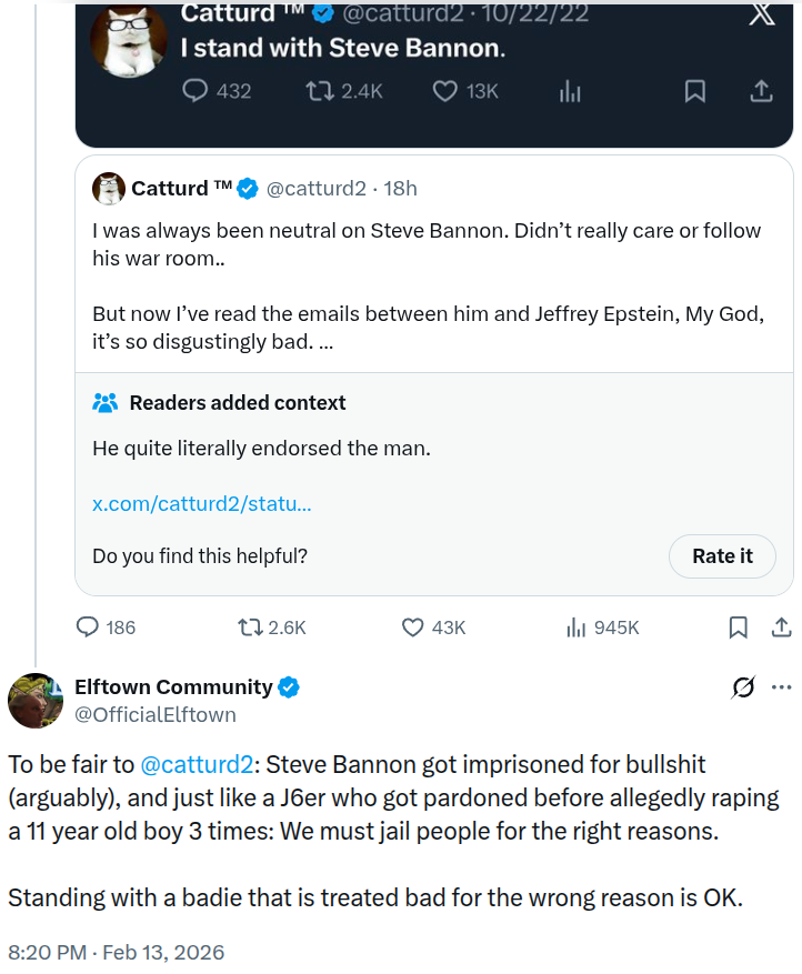 No, that doesn’t mean that I support his dumb take on stuff. He litterly needs to be buried in a litter box because he sticks, but standing with Steve Bannon when Steve was imprisoned for (arguably) the wrong reasons, is fine. 🥰