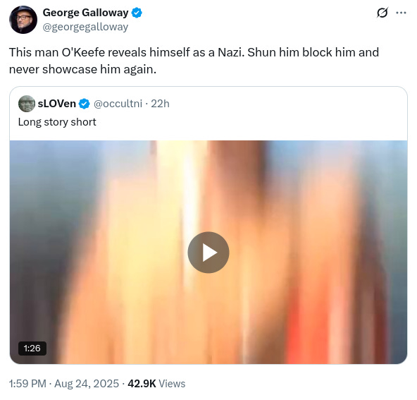 Ken O’Keefe might be a national socialist, but he isn’t wrong, but as all controlled opposition, George Gallaway calls for Zionist censorship despite that he thinks he is an antizionist and real opposition. We can not allow the Zionist lies about WW-II enslave the left anymore, as I explained in a comment to him.