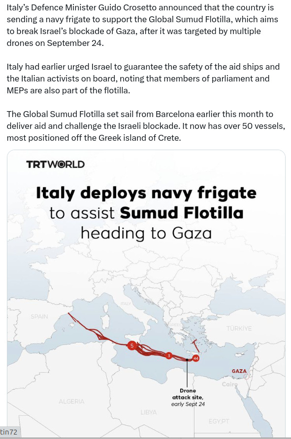 Robert Martin reports that Italy sends a frigate to fight Israeli terrorist drones (and now Spain too)