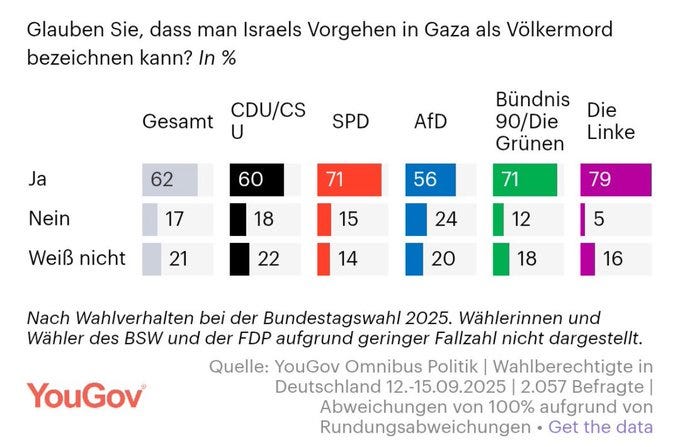 62% of the Germans think Israel is committing a genocide, and only 17 aren’t