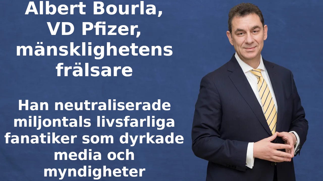 Antivaxxare skanderar "All hail Albert Bourla!".