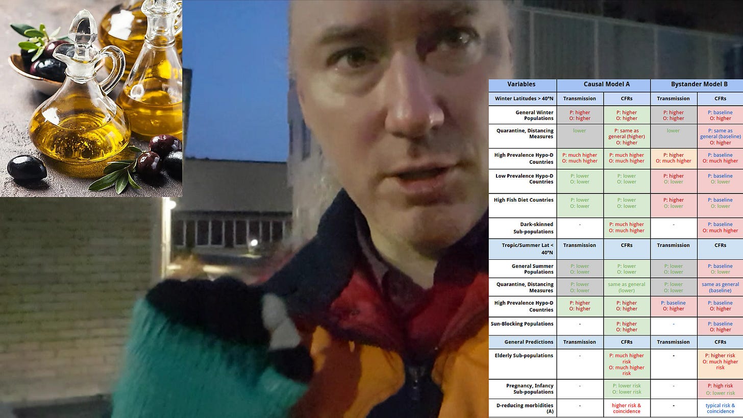Gruff Davis was proving a causal link (not just associative) between vitamin D from sun or supplement to better covid outcome. His paper is extremely interesting scientifically, because he proves causation from observational data, which you might think is impossible: